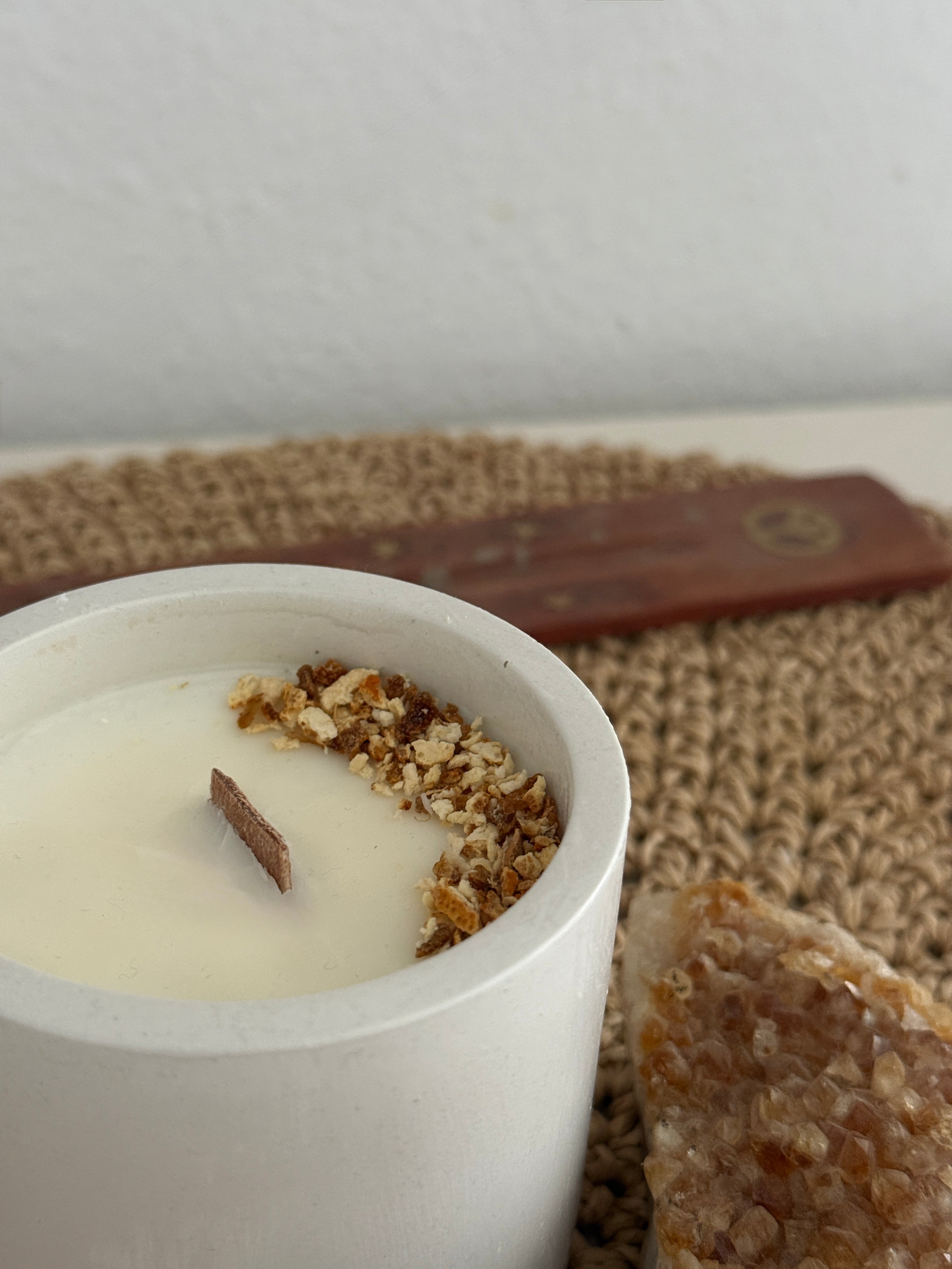 Cada vela está hecha a mano, con calma, para acompañarte en pausas conscientes, rituales personales o regalos con significado.